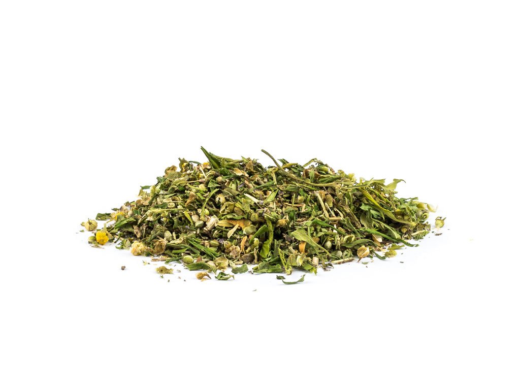 Složení: 70% Konopí, Meduňka nať, Mateřídouška nať, Heřmánek květ, Třezalka nať, Pomeranč květ, Kozlík kořen, Chmelové šištice